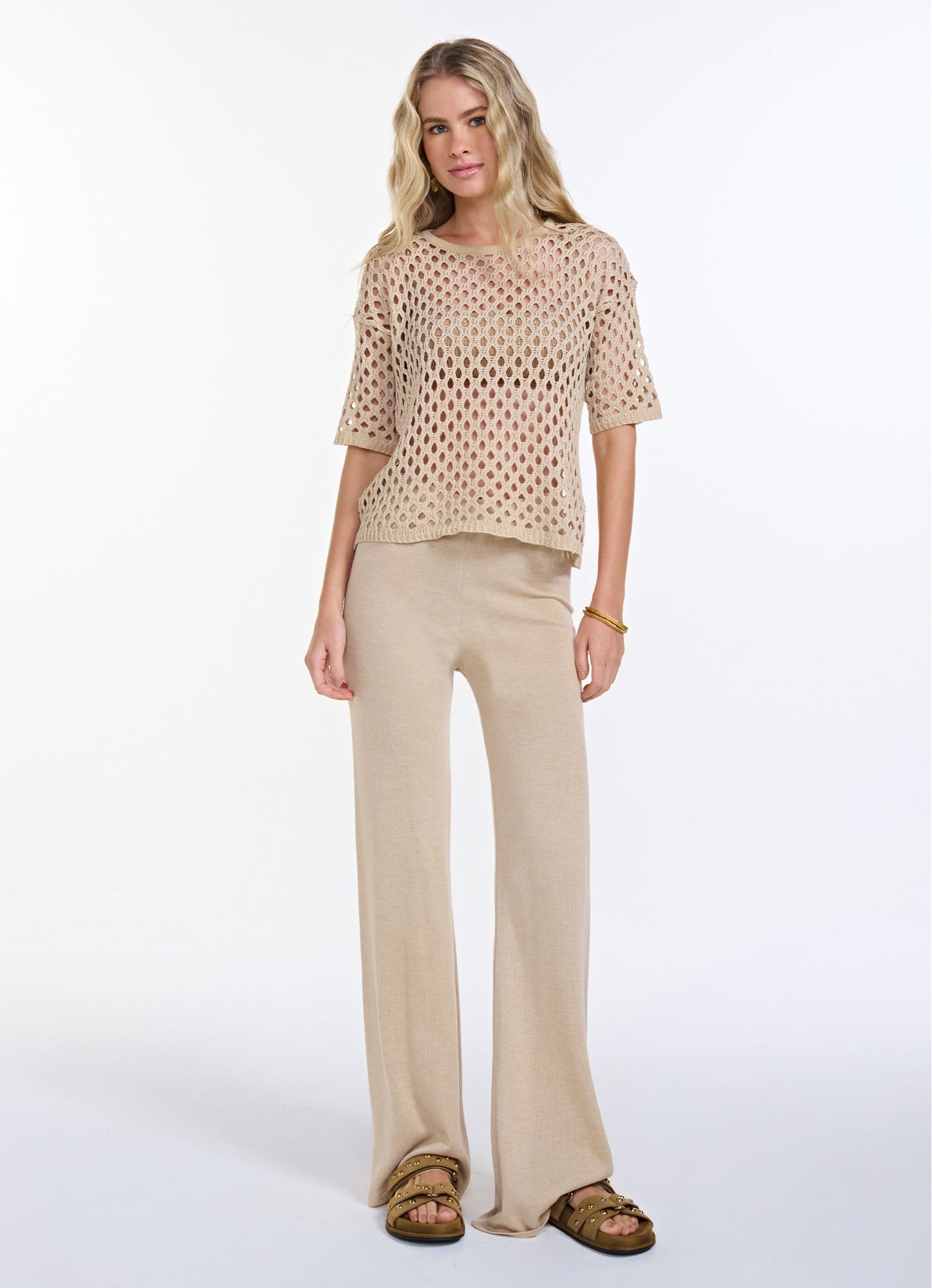 A Calça modelo Flare em Tricot é a escolha ideal para quem busca sofisticação com máximo conforto. Confeccionada em tricot macio e encorpado, ela oferece toque suave, elasticidade e excelente caimento, valorizando a silhueta de forma natural. Possui cintura alta com cós ajustável, que modela o corpo, além da modelagem flare, que alonga as pernas e traz um visual elegante e contemporâneo. O acabamento clean e a textura delicada do tricot fazem da peça um item versátil, perfeito para composições que vão do casual chic ao resort wear. REF.: V26TR04C