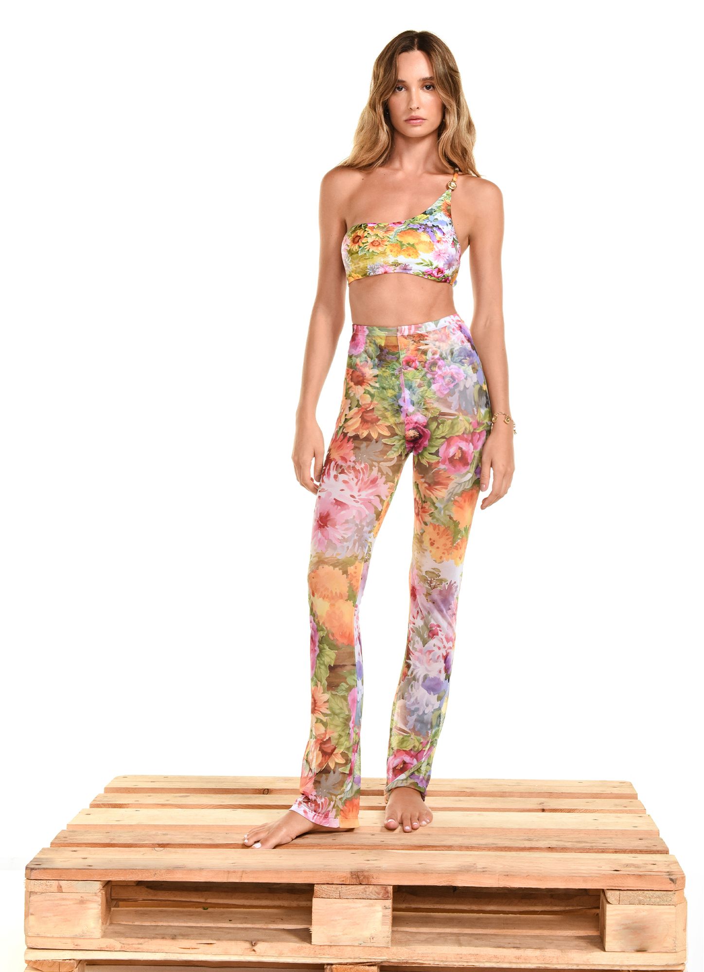 High-waisted Brazilian watercolor print pants with an elastic waistband and a wide-leg fit. Tulle fabric with digitally printed elastane. REF.: V26CL01PA Composition: 95.5% Polyester 4.5% Elastane Model wears size XS Made in Brazil Pieces are subject to print changes depending on the fabric cut.