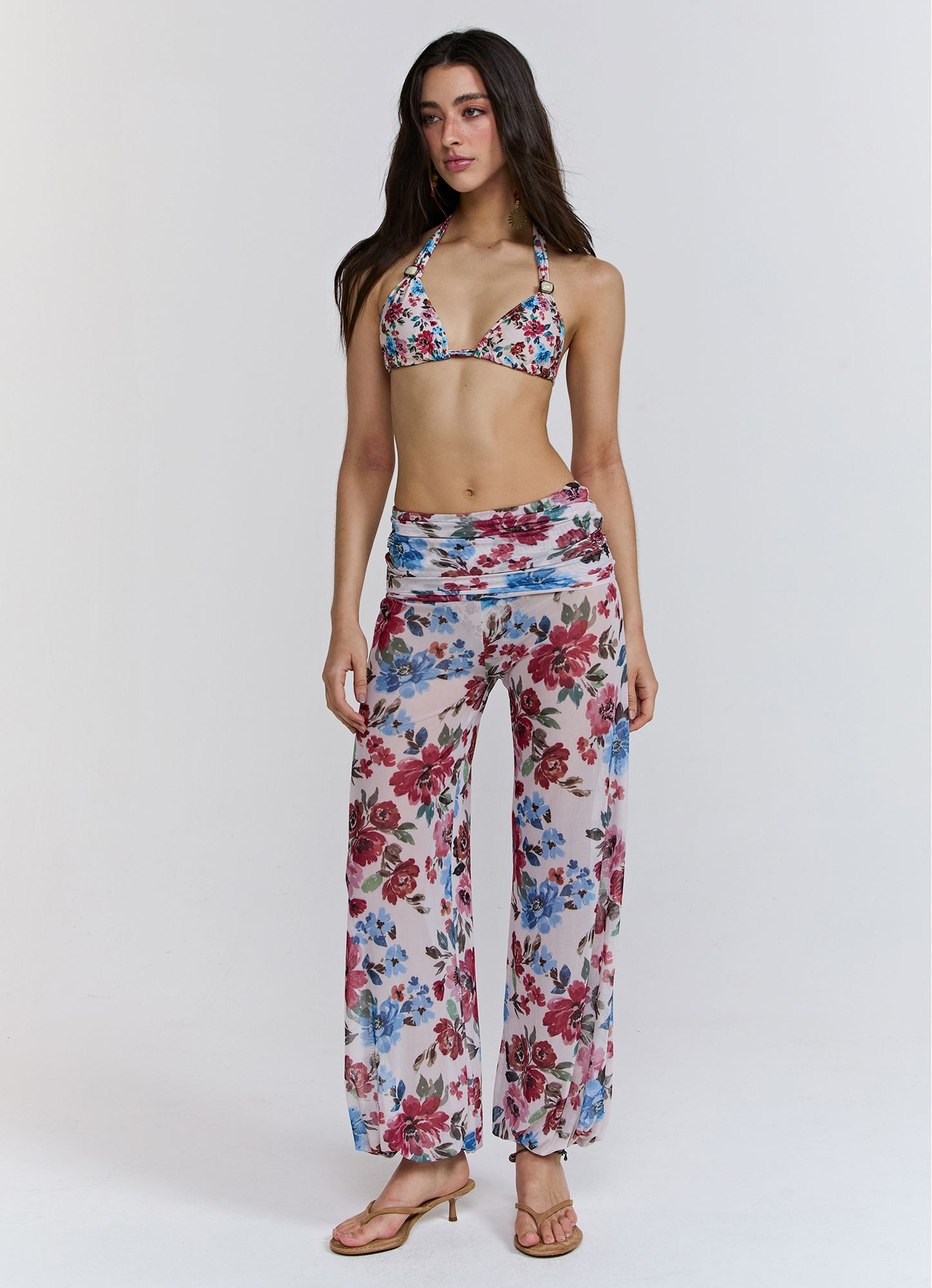Trousers made from high-quality tulle with an exclusive Winter 26 digital print, featuring a straight and flowing design, providing delicate movement and a smooth drape on the body. The draped and wider waistband enhances the silhouette and ensures comfort when wearing, while the subtle transparency of the tulle brings a contemporary touch to the piece. REF.: I26CL05PA Composition: 95.5% Polyester 4.5% Elastane Model wears size PP Made in Brazil Prints may vary depending on fabric cutting Wash gently
