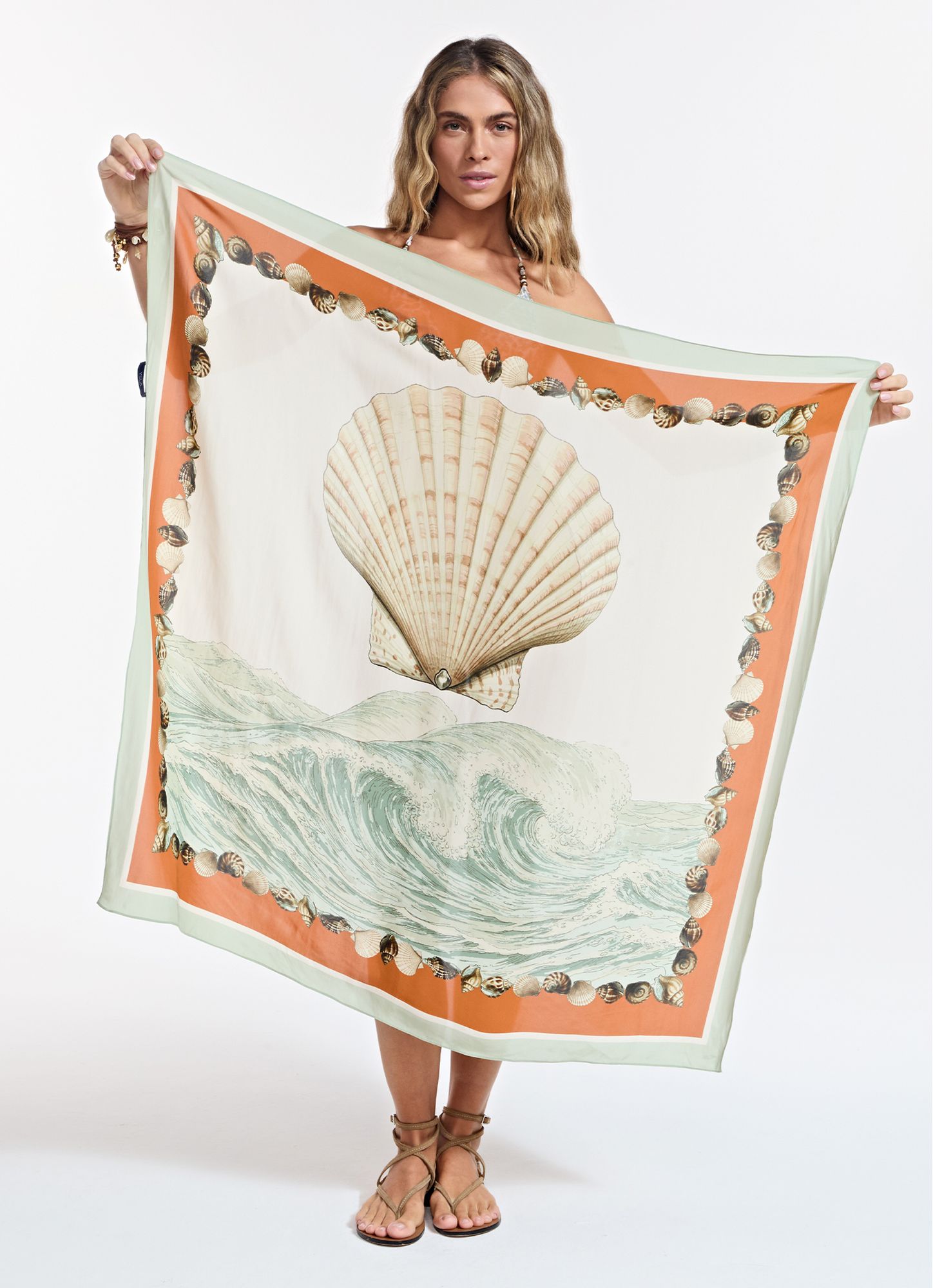 Viscose scarf with exclusive Ysla Summer 2026 digital seashell print, measuring 1m x 1m. A versatile piece that can be used as a beach cover-up, hair accessory, headband, top, or even tied to a bag for an extra touch. The lightweight and soft fabric ensures comfort and practicality, while the vibrant print brings the freshness and sophistication of the sea. Perfect for creating modern looks both at the beach and in the city, adding charm and elegance to any occasion. REF.: YV26AC02VA Composition: 100% Viscose Made in Brazil Wash Gently