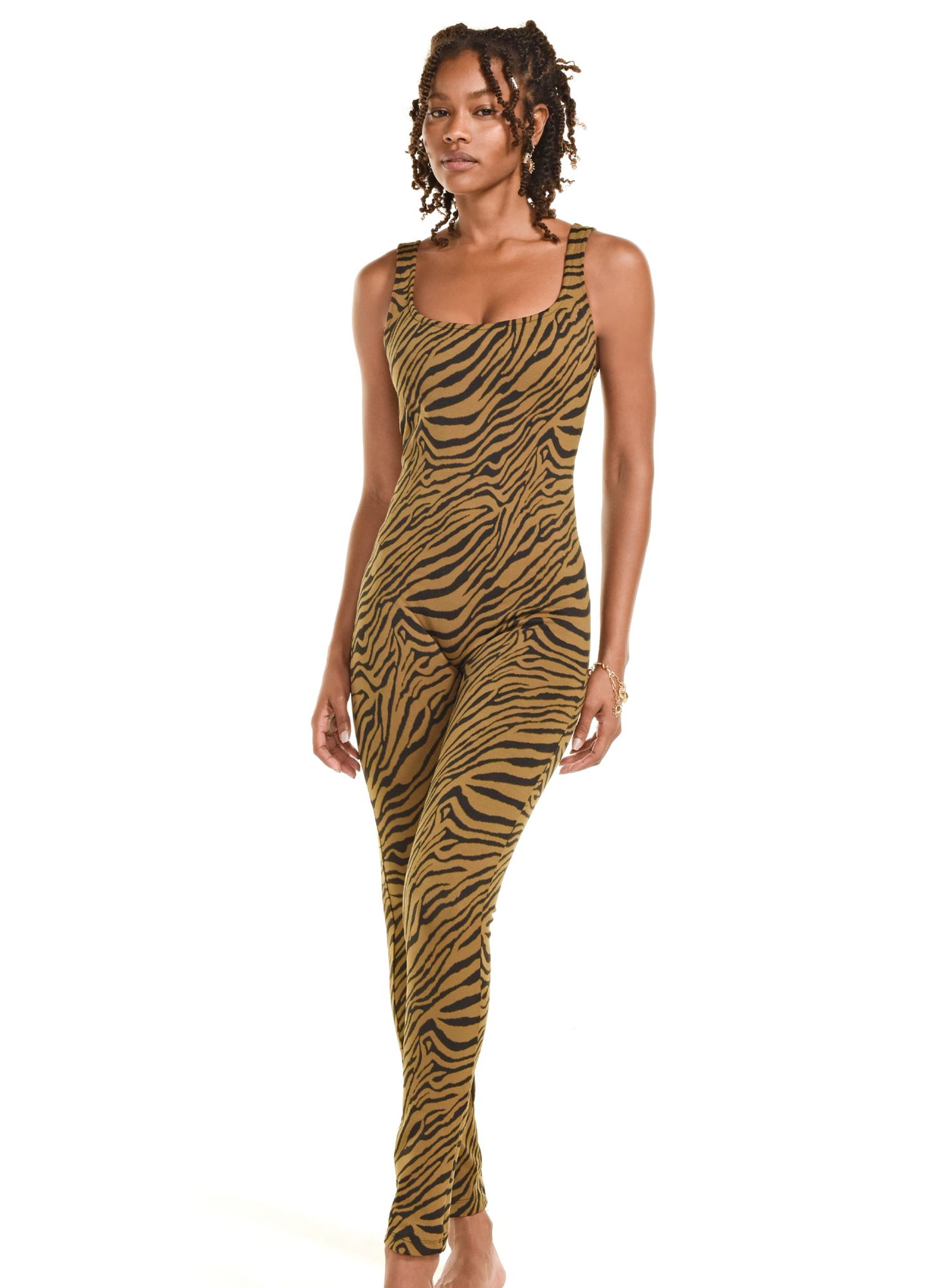 Wide strap jumpsuit, square neckline at the front and back. Jacquard knit fabric with elastane, zebra print REF.: I25MC01EA Composition: 44% Polyamide 42% Polyester 14% Elastane Model wears size PP Made in Brazil