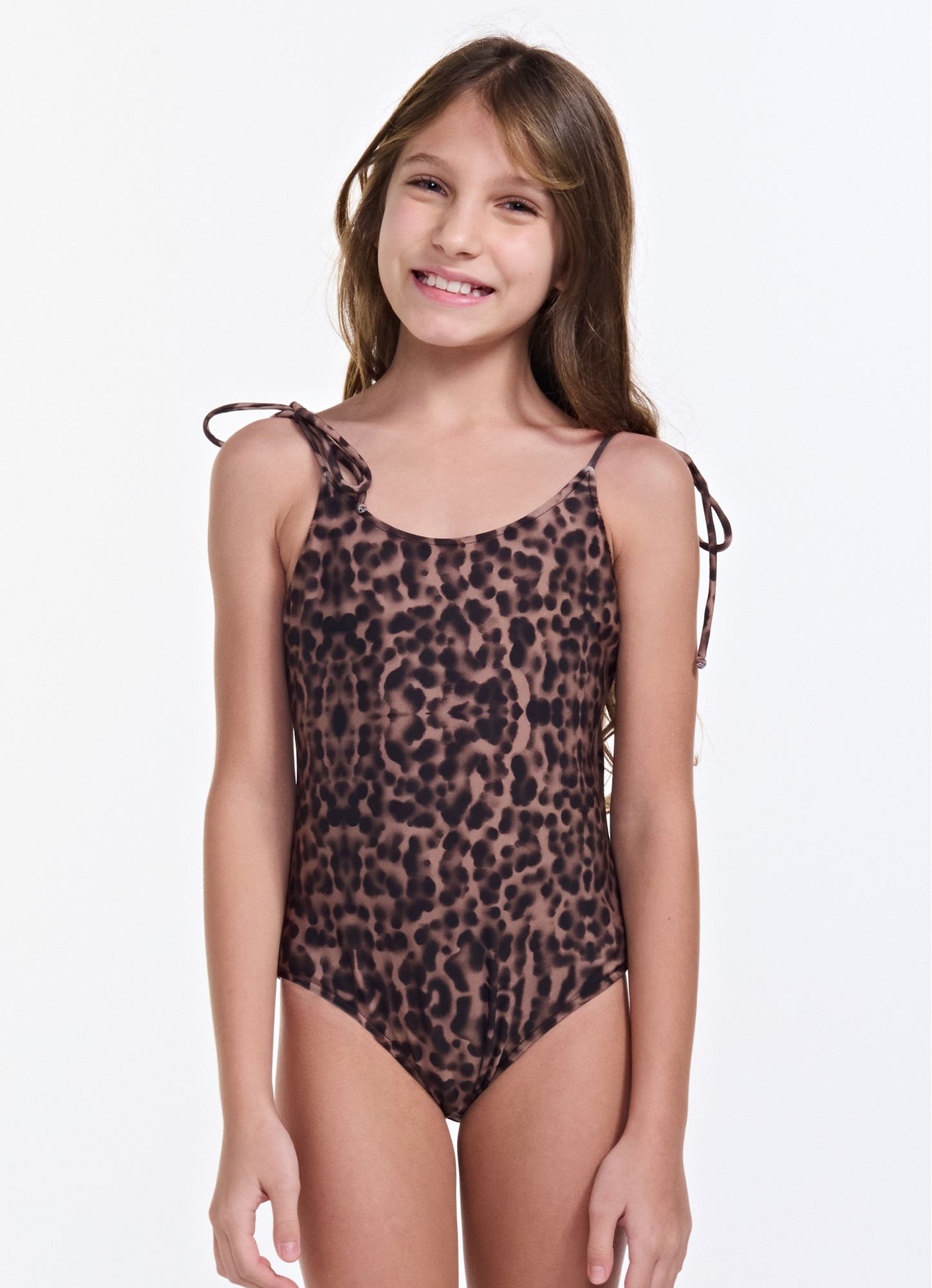 Kid's swimsuit with UV 50+ sun protection, made of high-quality microfiber with an exclusive Summer 2026 digital print. Thin, adjustable shoulder straps offer practicality and a delicate charm, allowing for a perfect fit. The U-neckline ensures a modern and comfortable look. Ideal for special combinations in mother-daughter looks. REF.: V26MB01EB Composition: 84% Polyamide 16% Elastane + Lining UV Protection Photo size 08 Made in Brazil The pieces are subject to changes in the print according to the fabric cut. Gently wash.