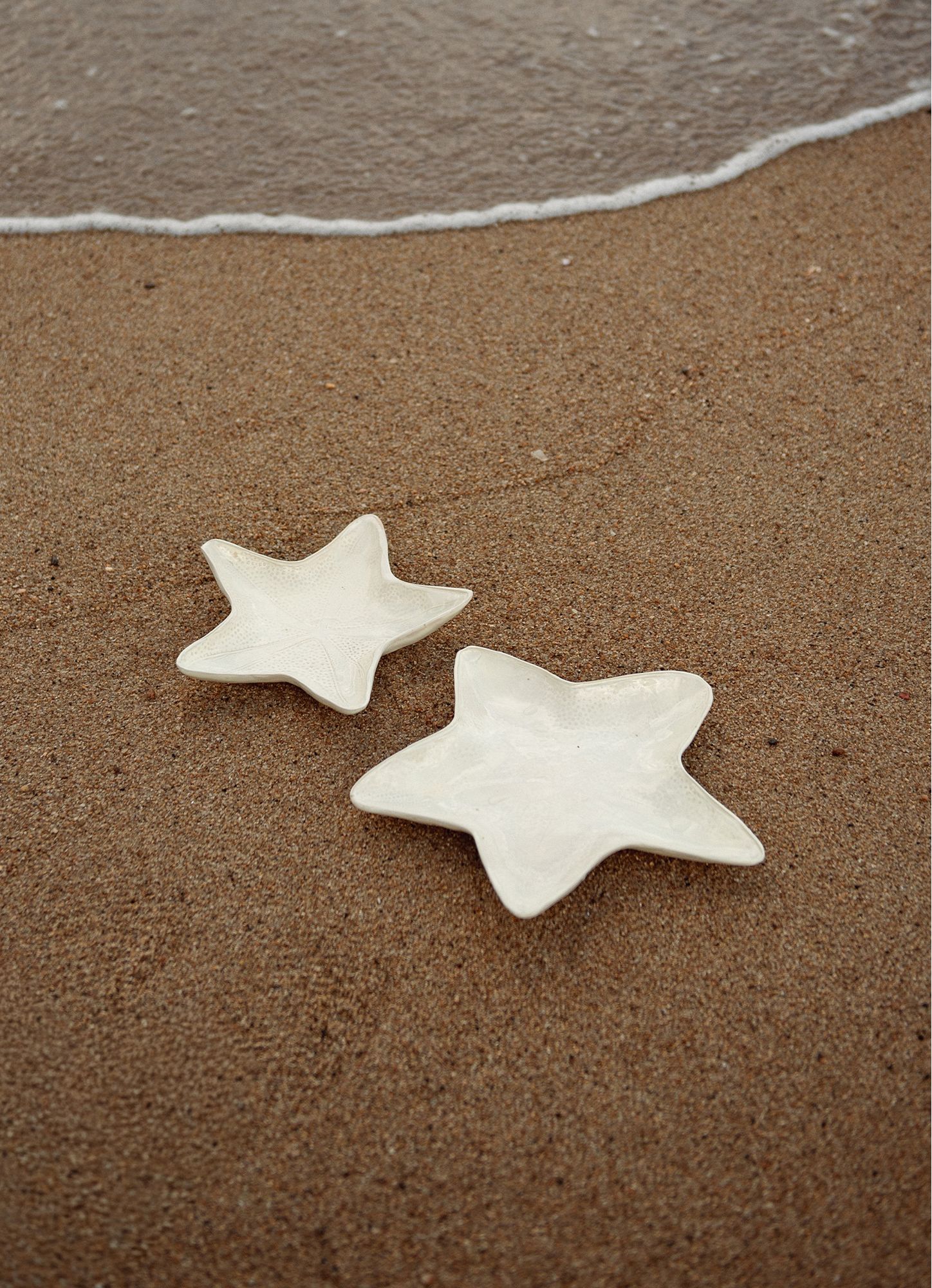 Dimensions: 30cm x 25cm x 3cm height. Material: Hand-molded and painted ceramic. Color: Vintage off-white. Description: Ceramic side plate in the shape and texture of a starfish, medium size. Functionality: Ideal plate for supporting larger serving dishes when setting a table. Can also be used for medium portions of appetizers or food. It has a slight depth that allows for serving portions with sauces or gravies. Note: Each Jay Home piece is handmade with care and dedication at every stage. Because they are handcrafted, small variations in color, shape, and texture are part of the process – and that's precisely what makes each item unique. These differences reflect the organic forms and the individual touch of the creator, giving even more authenticity and personality to each piece. REF.: JAY42