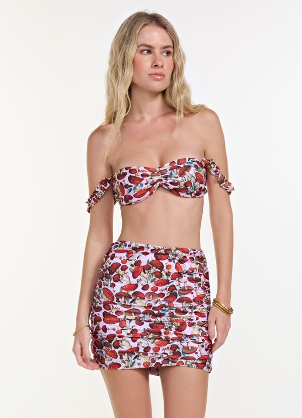 Short, high-waisted skirt in microfiber fabric with UV 50+ protection, featuring an exclusive Mushroom High Summer 2026 print. The body-hugging design, with side draping for a sophisticated and modern fit, is versatile and can be worn both casually and as a beach cover-up, bringing style and comfort to a variety of occasions. REF.: V26SA03EC Composition: 84% Polyamide 16% Elastane + Lining UV Protection Photo size XS Made in Brazil The print may change depending on the fabric cut. Gently wash.