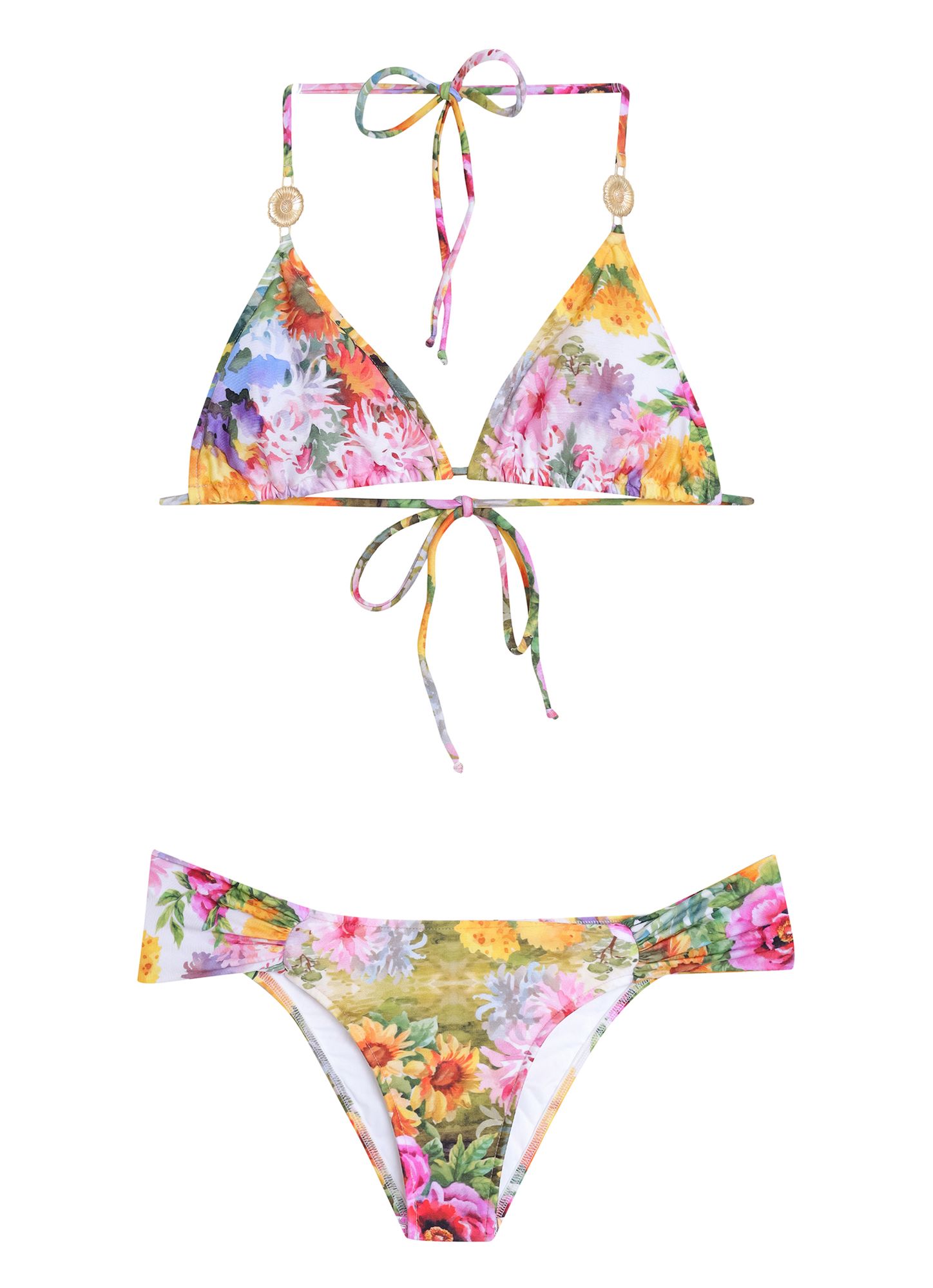 Top Cortininha Bela + Calcinha Kitty Jardim Aquarela