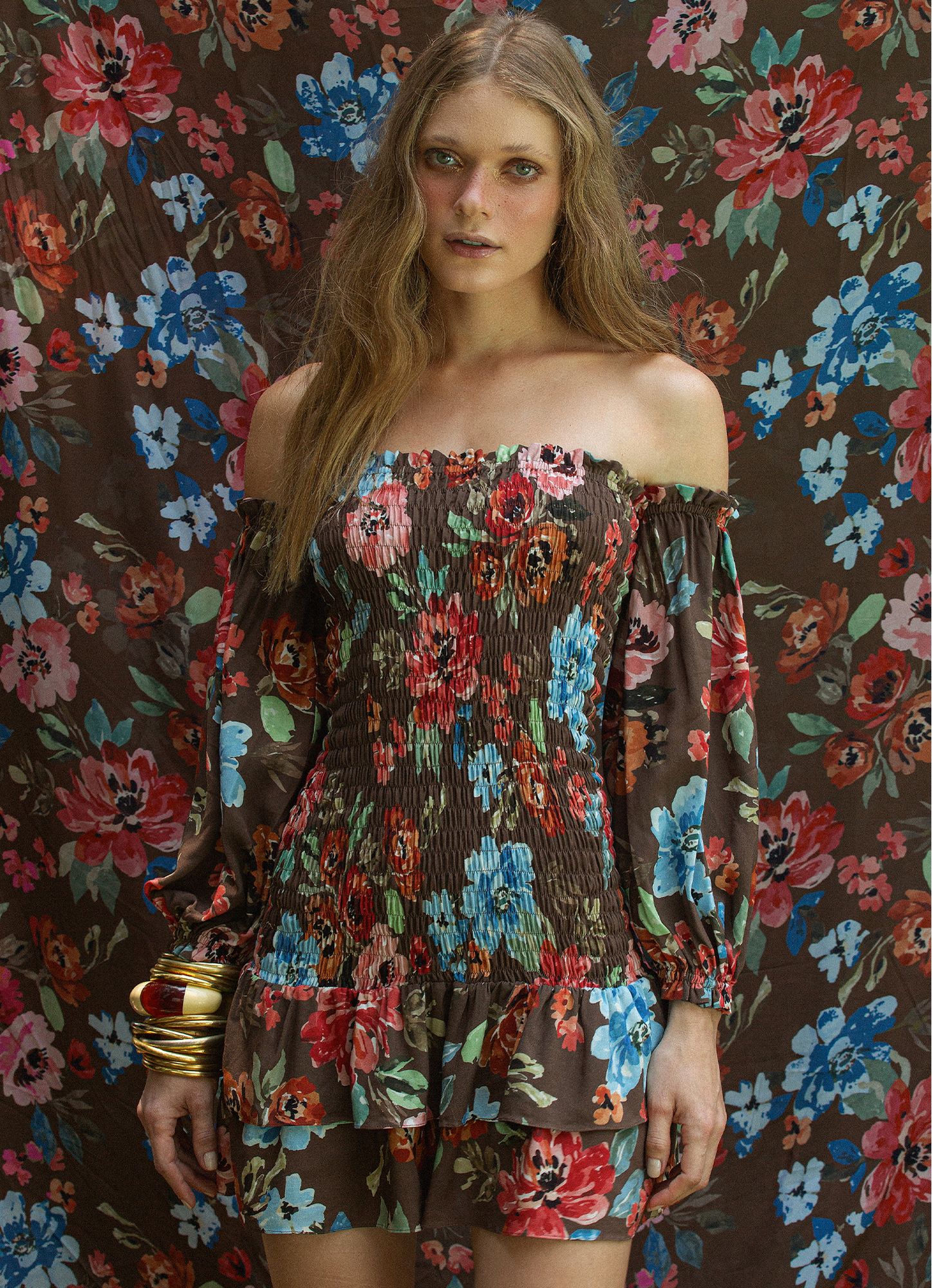 Dress with exclusive digital floral winter viscose print, short length, straight strapless neckline with elastic detail for better fit, comfort and support, and a ruffle at the hem. Removable sleeve detail allows the dress to be worn in two different ways. REF.: I26VE02VA Composition: 100% Viscose Model wears size PP Made in Brazil Prints may vary slightly depending on fabric cutting.
